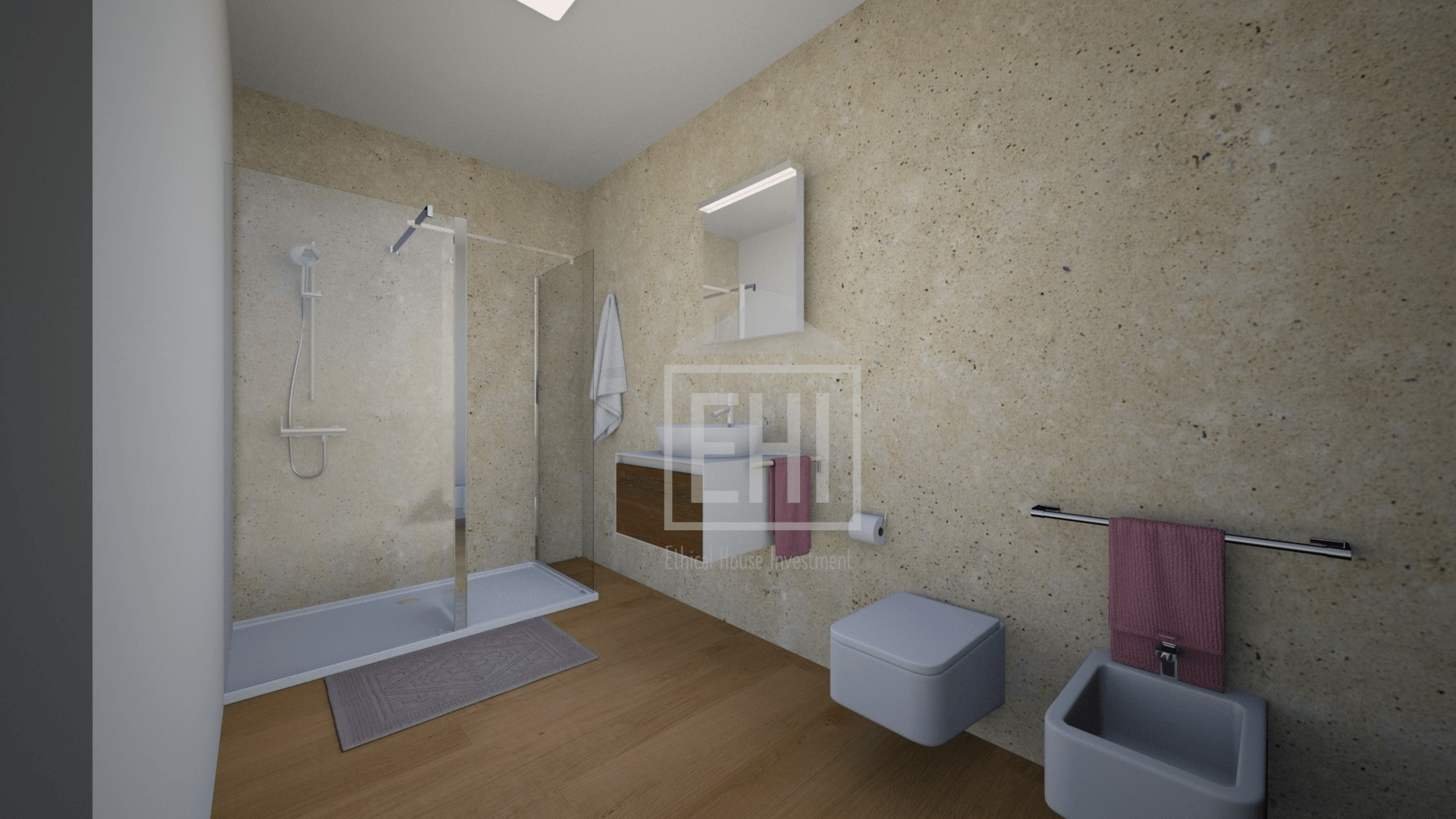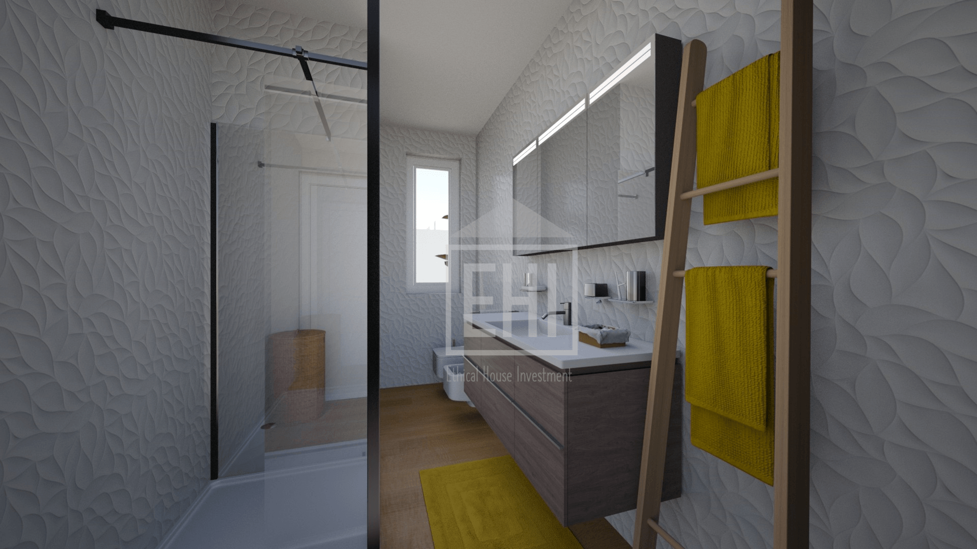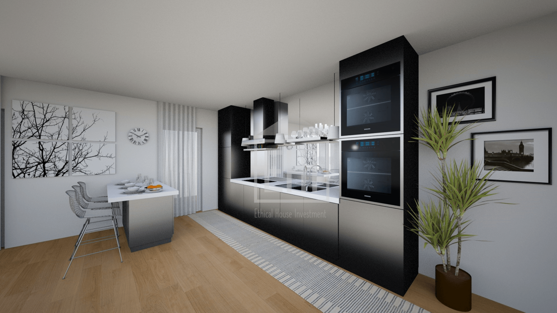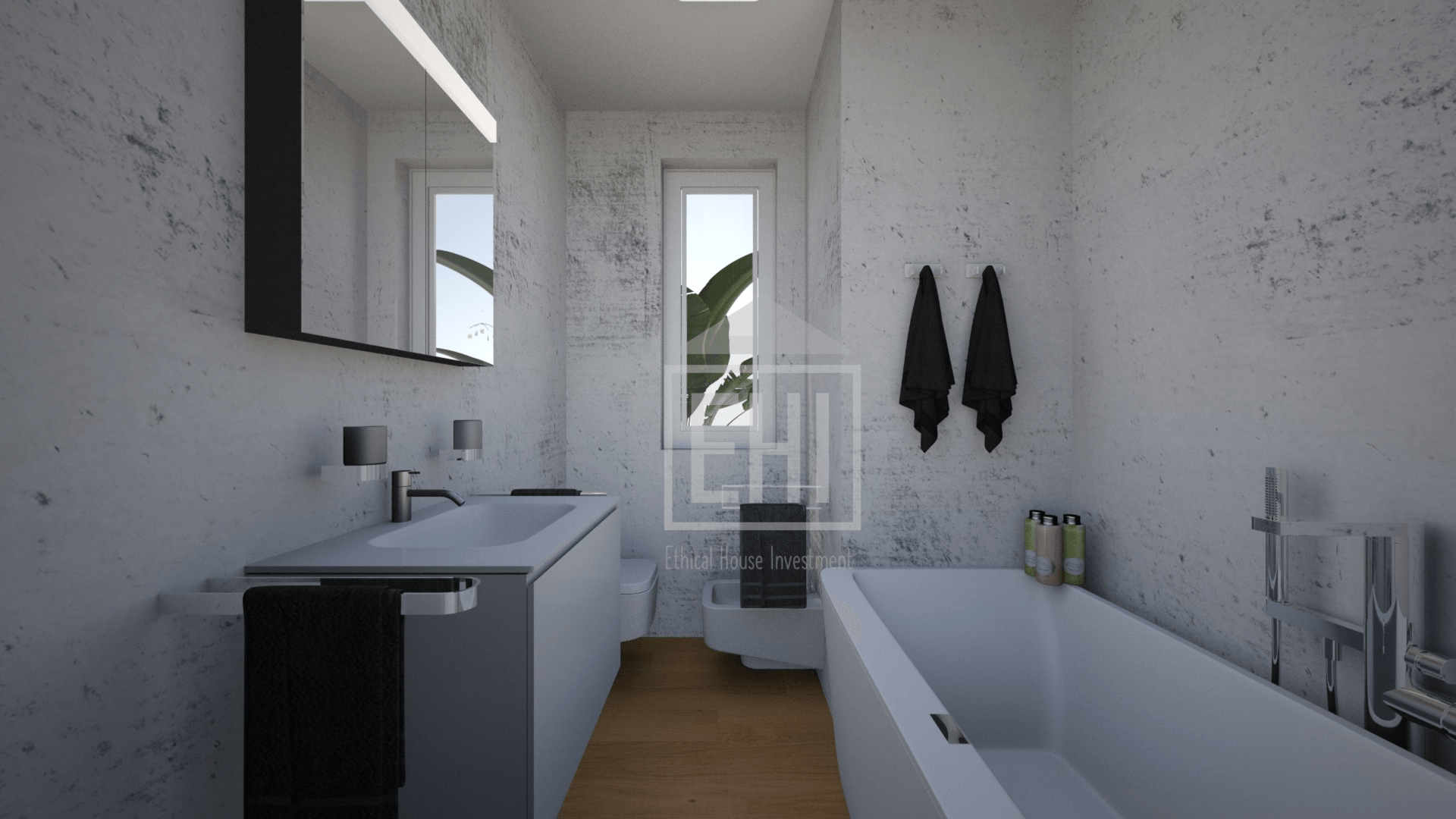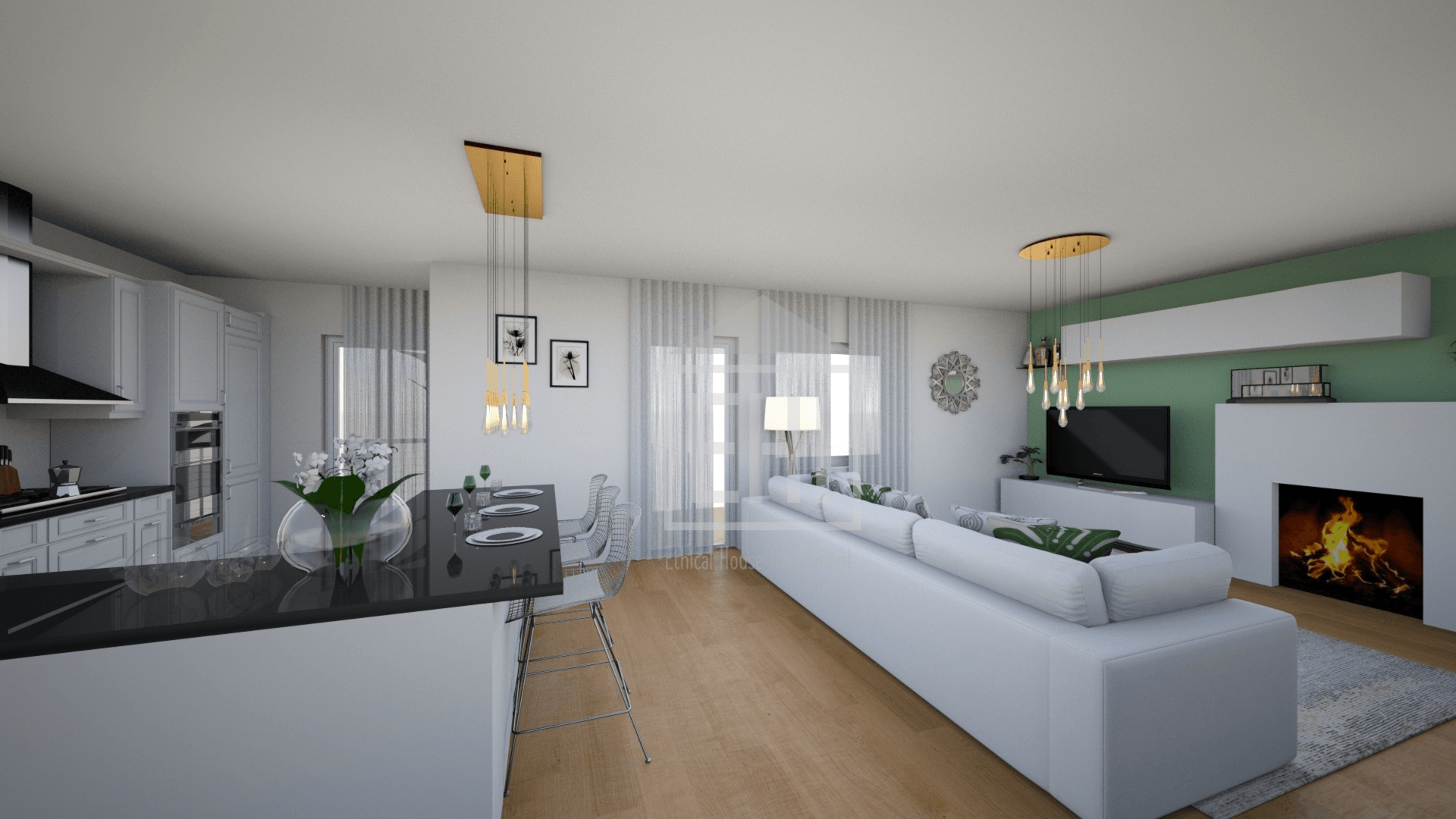 L'appartamento è così strutturato: soggiorno con cucina open space , disimpegno, due bagni, ripostiglio, due camere, due ampi balconi dalla superficie complessiva di circa 28mq.